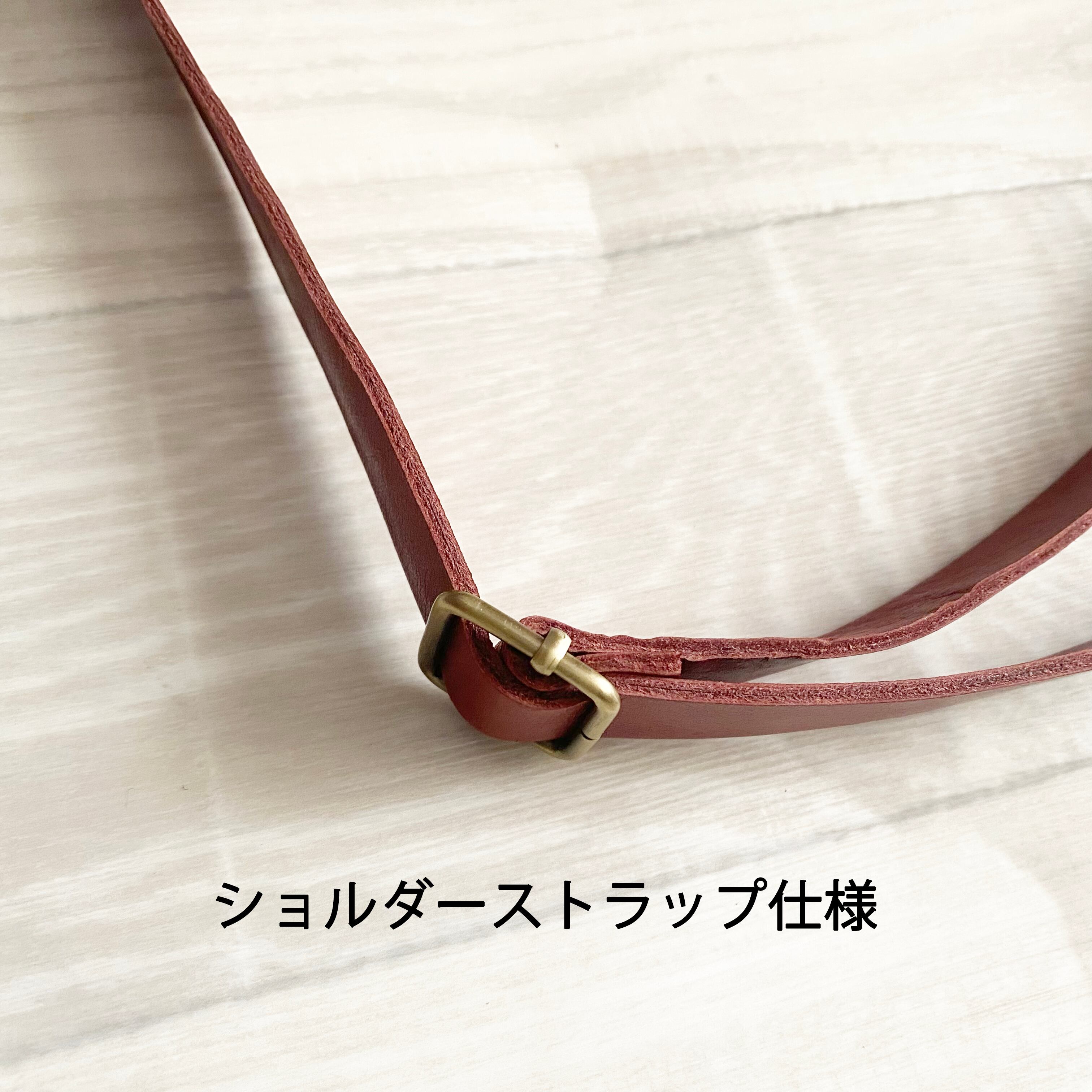 ショルダーストラップは100㎝まで伸長のミドルサイズ。太めの20mm幅のストラップでボディバッグのようにもお使いいただけます。