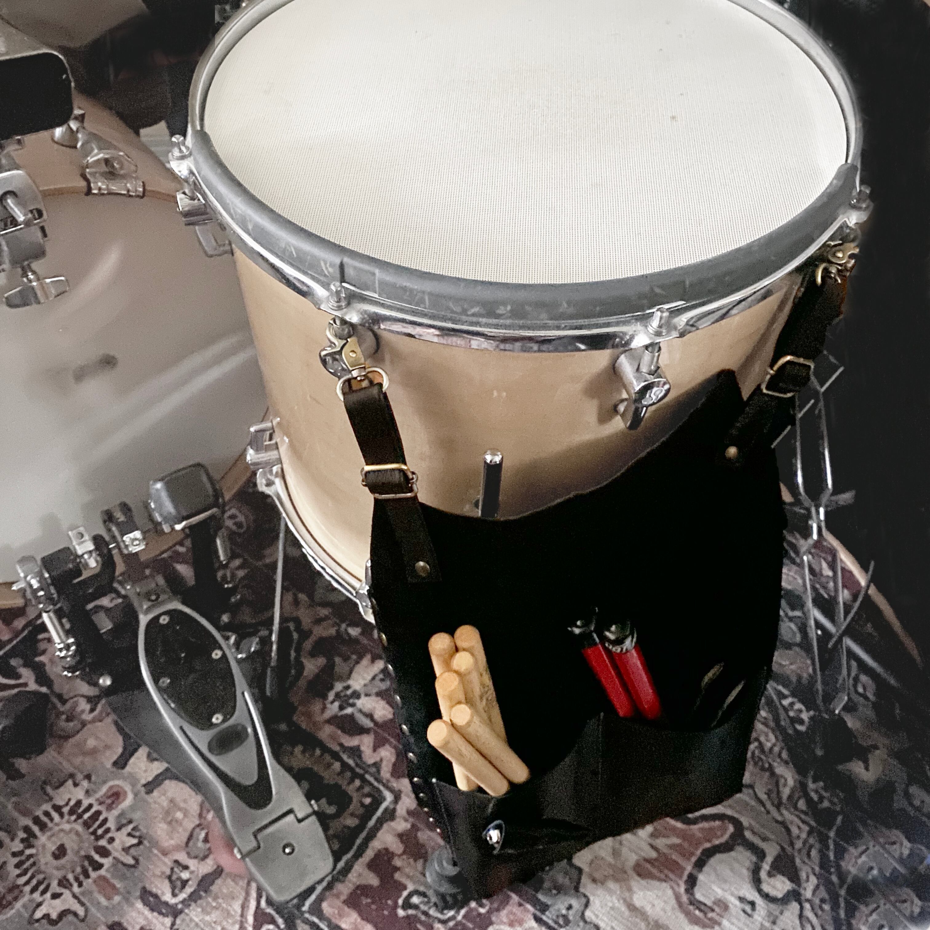 2か所のスティックポケット、チューニングキーホルダー、Dカン、フロアタムにマウントできるアジャスター付きベルトを備え、使いやすさにもこだわりました。